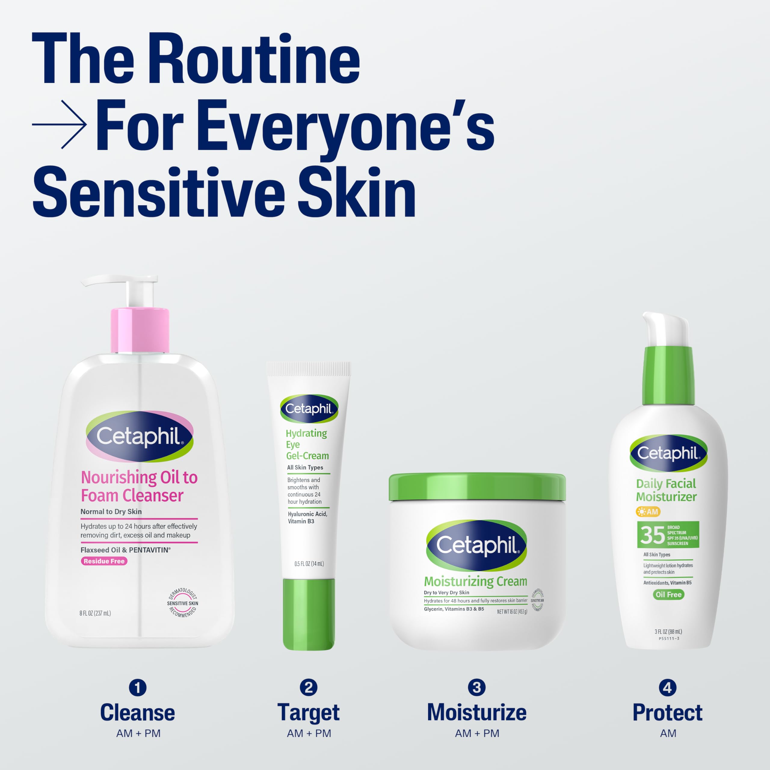 - VERSATILE FOR ANY ROUTINE: Use this hydrating cleanser as a double cleanse in a single step at home, after the gym, while traveling, or pair with Cetaphil Gentle Skin Cleanser for a complete sensitive skin care routine